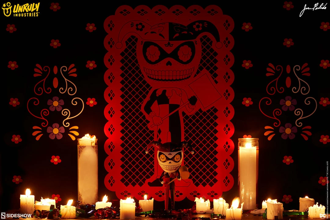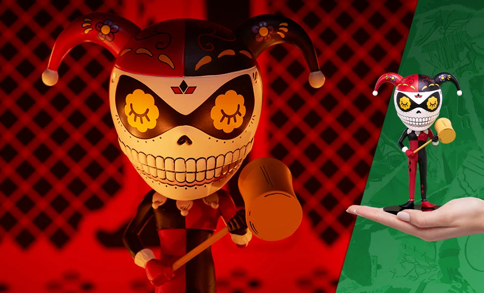 Jose Pulidoās Harley Quinn Calavera limited editionĀ designer collectible toyĀ captures Gothamās iconic Maid of Mischief with a colorful new lease on afterlife!