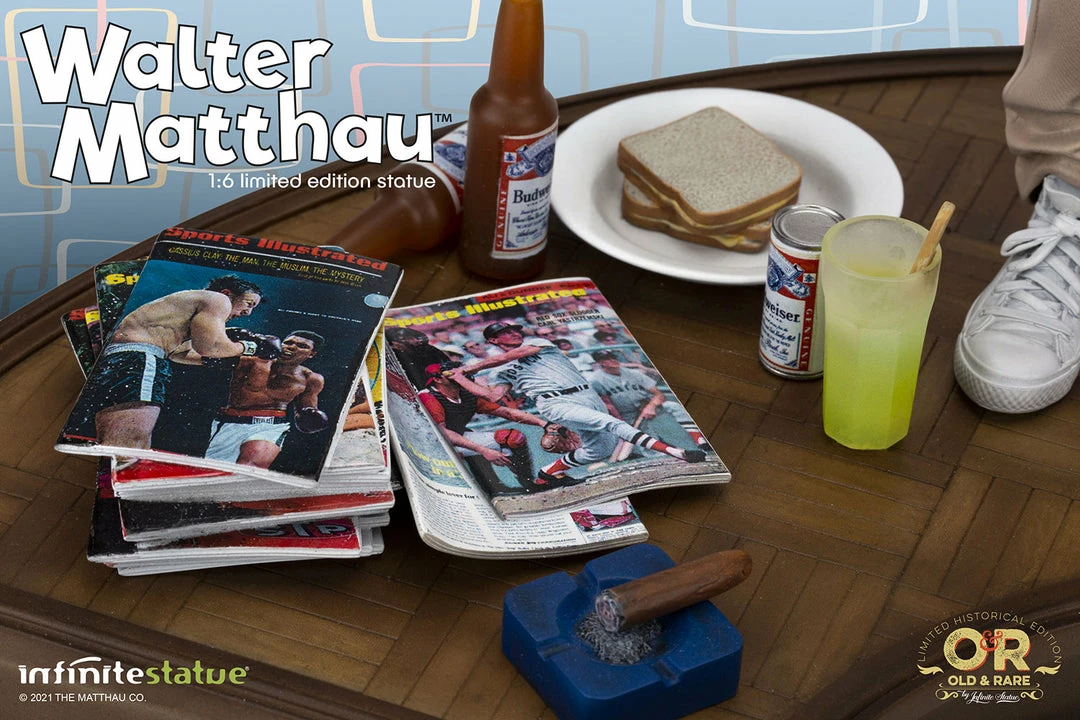 Bachelor, separated, a baseball commentator, a distracted smoker, an inveterate poker player, a night owl, hopelessly untidy. This would be enough to propel a character into a different world. In his finest interpretations, Walter Matthau is all this, with his annoying defects that you are always ready to forgive when you see him smile in the way that only he can. Depicting Matthau was not just a tribute to an unforgettable actor, but also an adventure in his world made of many small details that we have reproduced with great accuracy.