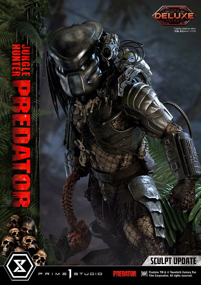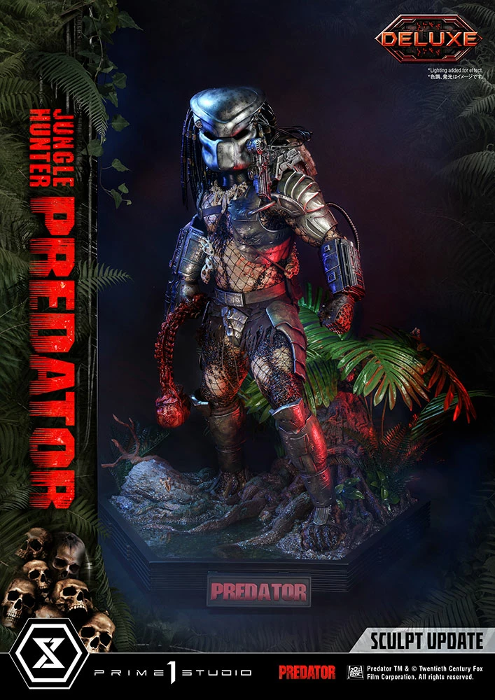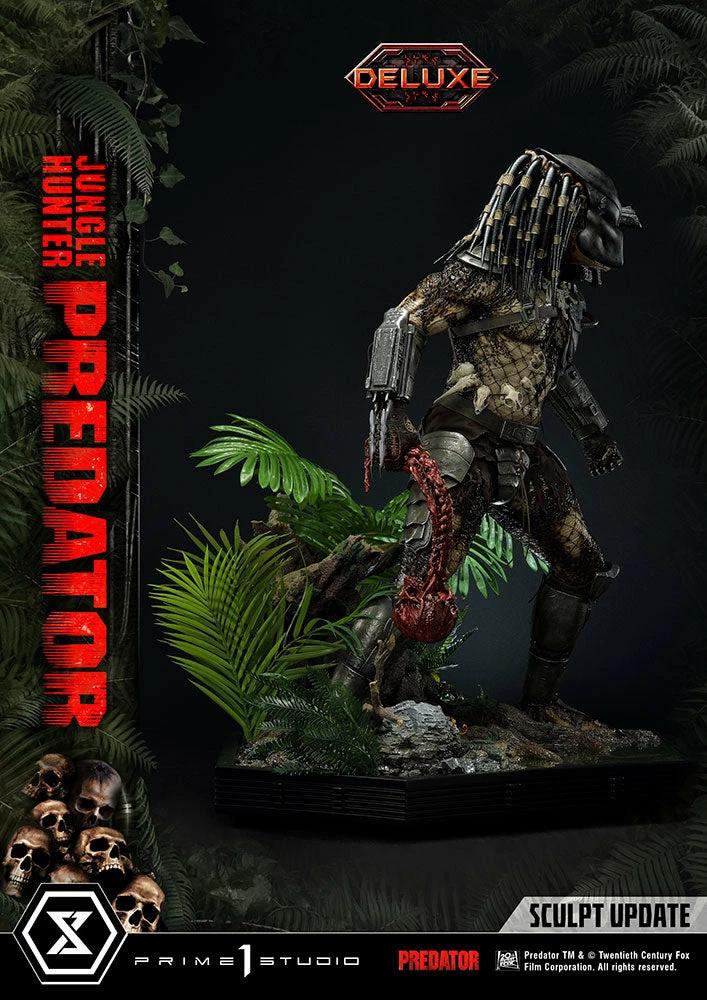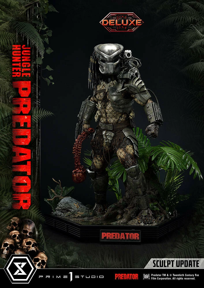 Standing majestically at over 35 inches tall, the Jungle Hunter Predator reveals itself as an imposing, otherworldly peril intent on relentlessly hunting its prey. In this pivotal moment, where the Jungle Hunter Predator reveals his true form to Dutch (the main protagonist of the film), the skilled artisans at Prime 1 Studio have seated the Predatorβs Bio Mask in the gnarled roots of a tree. In the film, the Predator takes off his Bio-Mask and drops it in the putrid, leech-infested water of the jungle, which we have faithfully recreated here with translucent resin and detailed inclusions, for a convincing watery effect.