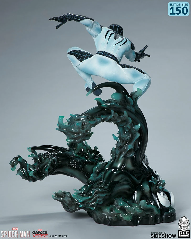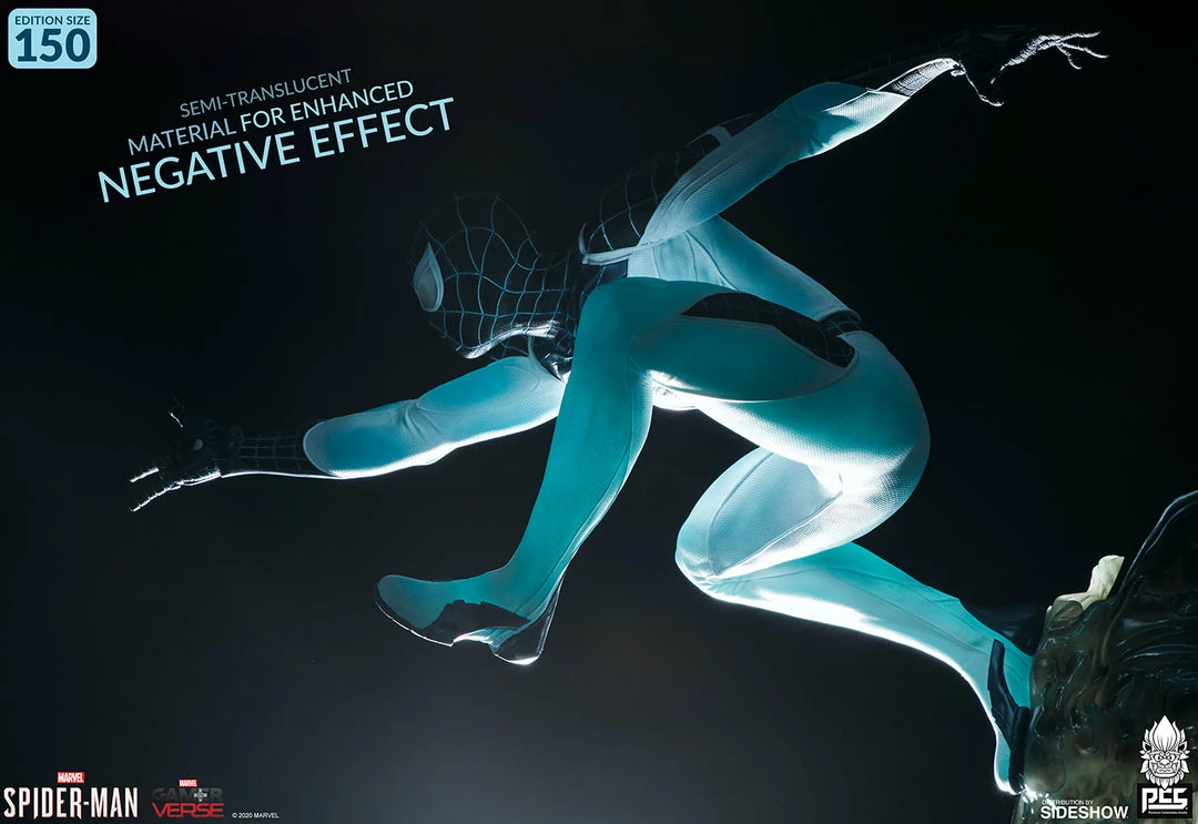 The Spider-Man Negative Zone Suit 1:3 Scale Statue captures all of the action and web-slinging thrills of the hit video game in a dynamic collectible format. The statue measures 24โ tall as Peter Parker leaps into battle against Martin Li, also known as the villainous Mister Negative. Charged up with semi-translucent negative energy, Liโs mystical and monstrous Demon form serves as the statue base and brings fans back to the center of an epic boss battle translated right from the screen to your shelf.