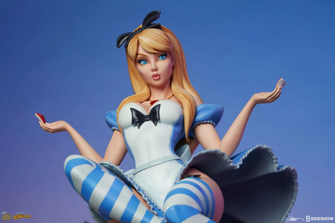 Sideshow and fan-favorite artist J. Scott Campbell have gone down the rabbit hole to bring you the next fanciful addition to J. Scott Campbellβs Fairytale Fantasies Collection, the Alice in Wonderland Statue.