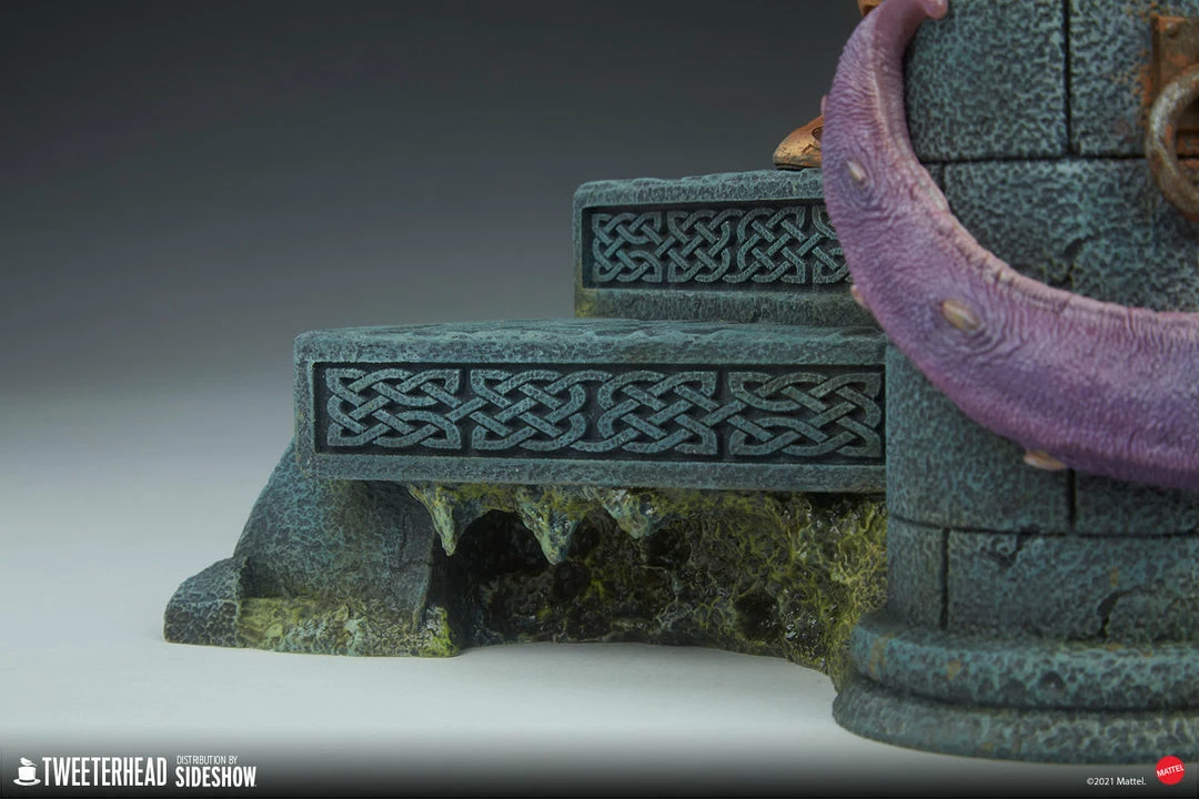 Teela comes on a Castle Grayskull themed base, descending down a staircase into the castleβs dungeon towards the βDwell of Soulsβ… On the back of the base lurks a monstrous surprise thatβs a fun nod to the classic Castle Grayskull playset.
