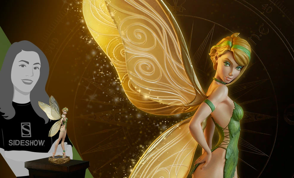 Based on J. Scott Campbellβs signature style, Tinkerbell shimmers with an air of mischievous magic. The polyresin pixie has detailed, translucent wings and an 11β wingspan, and her green leaf dress is intricately sculpted with natural textures befitting the Neverland native. Tink also has green accessories, including her necklace, armband, leg cuff, and the vines at her thigh.