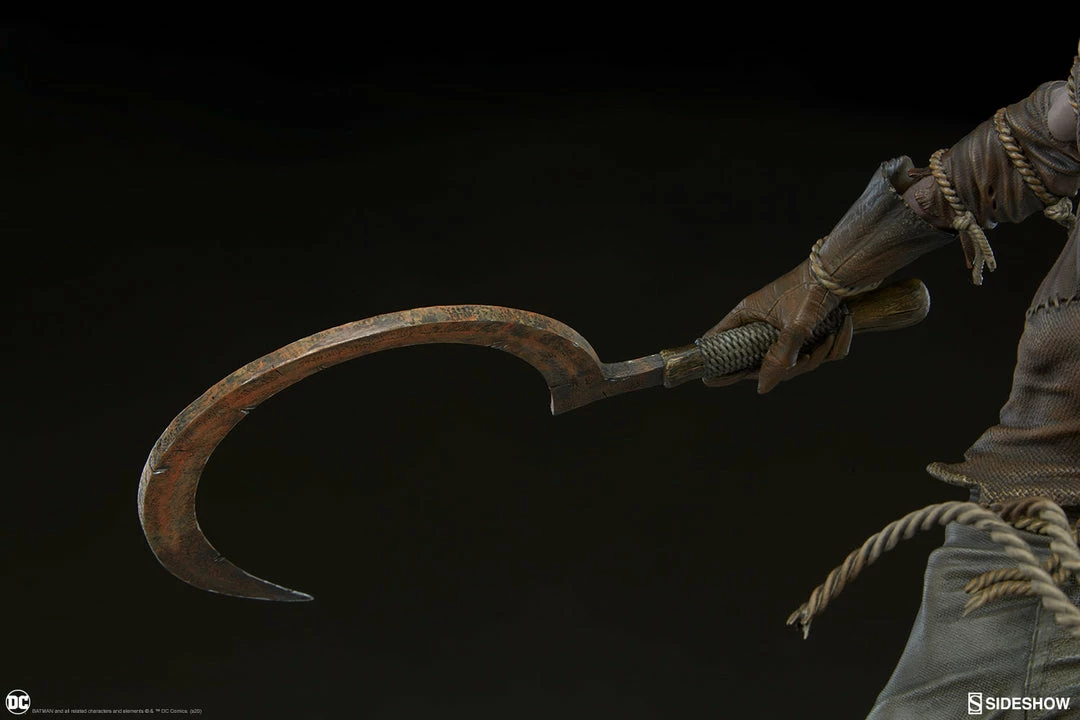 The polyresin Scarecrow Premium Format⢠Figure features an entirely sculpted costume with extensive texturing and detail to capture his unique and horrifying look. The villainās raggedy appearance includes sculpted stitching and patchwork textures that artfully mimic the look of distressed burlap, cloth, and leather throughout. Crane wears a hangmanās knot around his neck and holds a sickle in his clutches, reaching forward to grab hold of the mind and reap the fear he has sewn.