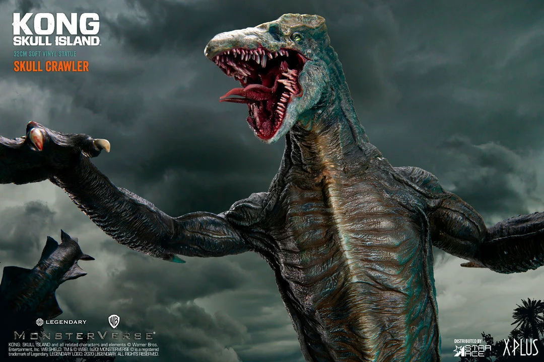 The Monsterverse™ brought us Kong: Skull Island which revitalized the King Kong story and added new and dangerous monsters to the mythos, including the vicious Skullcrawlers. This new 13.78″ vinyl figure captures the fearsome Skullcrawler in action as he prepares to face off against the Mighty Kong. He is painted by hand to bring out all the incredible nuances of his expression and recreate the realism that makes the figure look alive. The Skullcrawler is on a base that simulates it emerging from the water to attack Kong from below.
