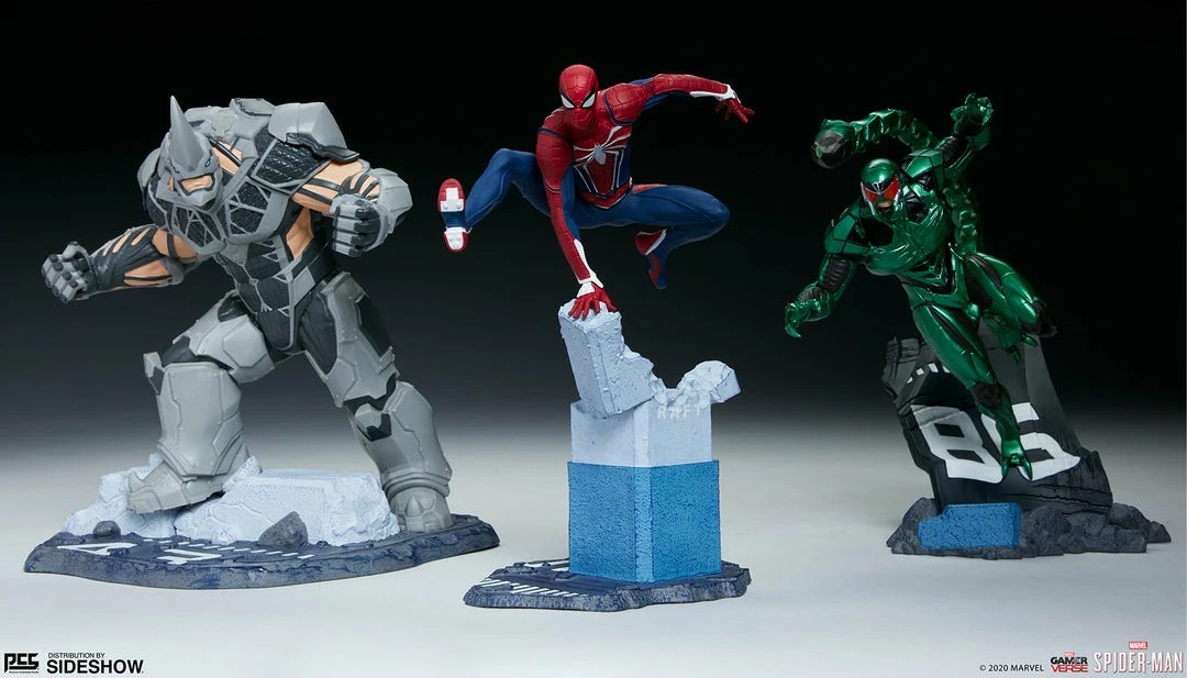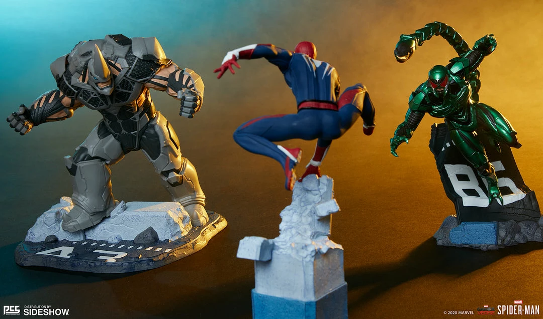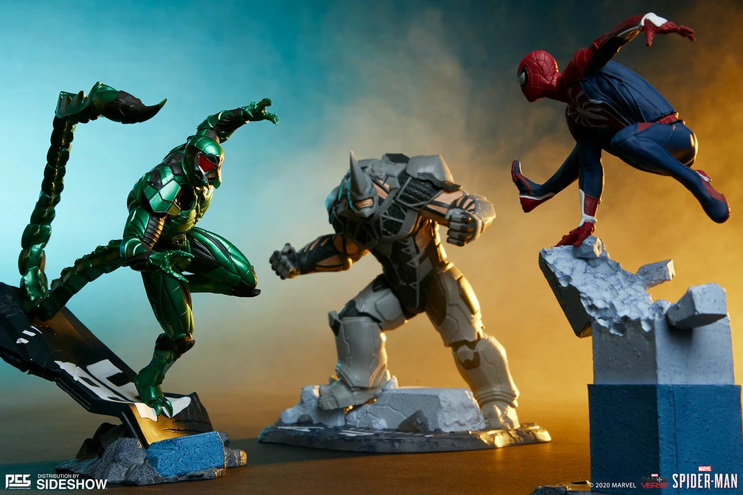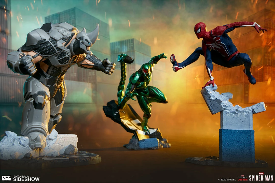 Sideshow and PCS Collectibles present the Spider-Man/Rhino/Scorpion 1:12 Scale Statue Set, based on the epic cellblock breakout sequence from the hit video game Marvel’s Spider-Man.