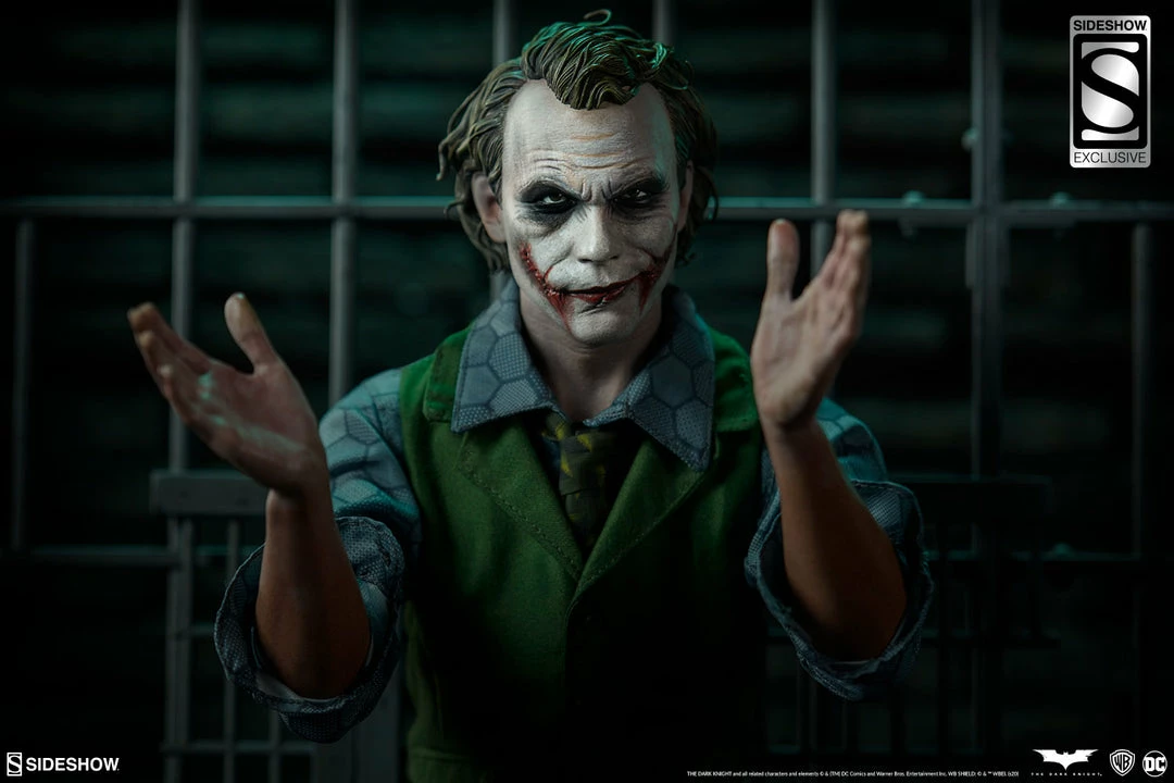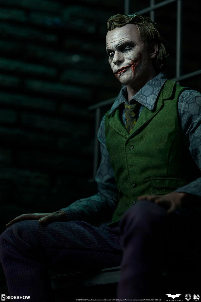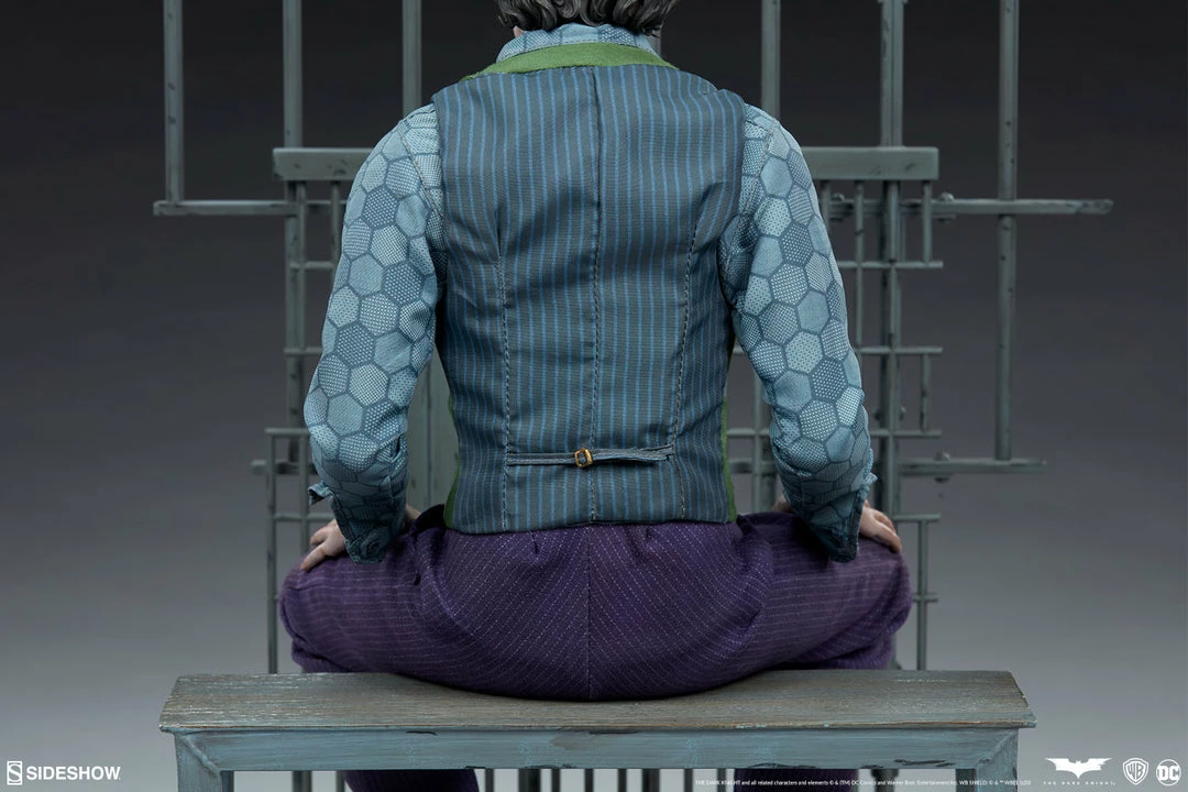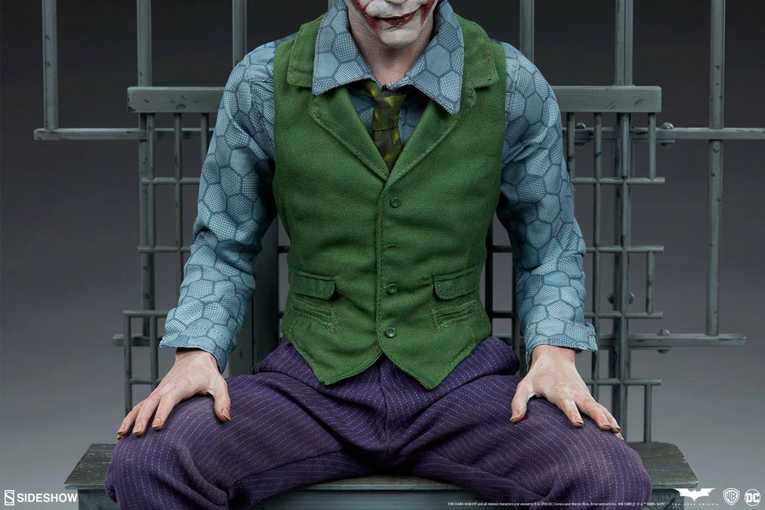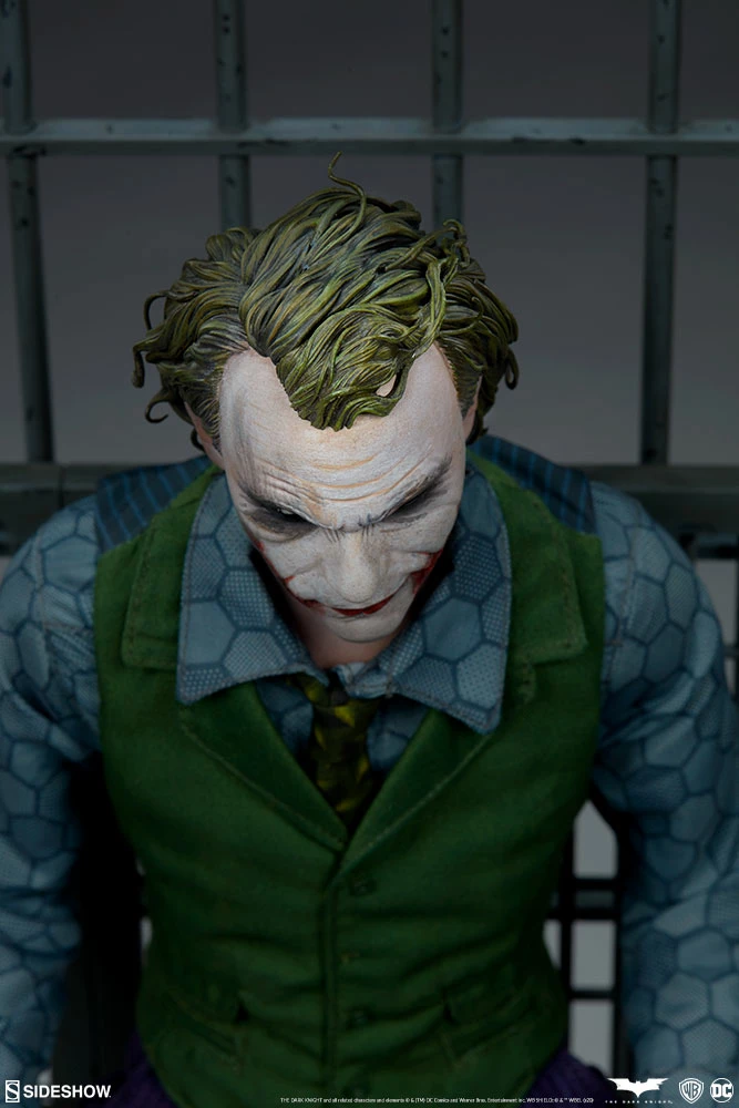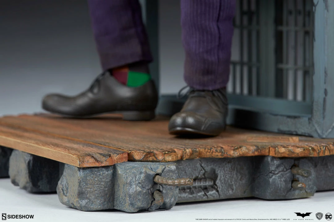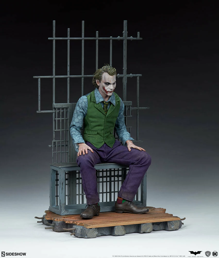 The Joker Premium Format⢠Figure measures 20ā tall and captures every chilling detail of Heath Ledgerās haunting performance as the Clown Prince of Crime himself. Based on the Gotham City police department scene from the film, this collectible includes a detailed environment base with jail bars that can be magnetically placed in front of or behind the figure for multiple display options.