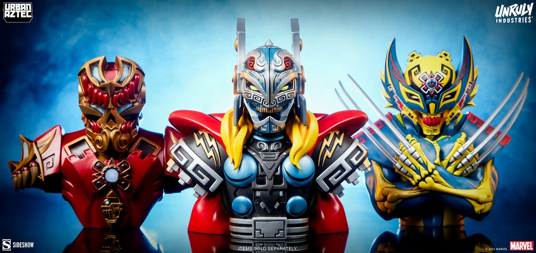 Artist Statement:Ā It was epic getting to mash up my favorite Marvel characters with Aztec and Mayan influences. The God of Thunder meets Eagle Warrior style continuing the line of Urban Aztec x Marvel mashups. An aggressive new armor covered with ancient symbols to create the #ThunderingEagle.