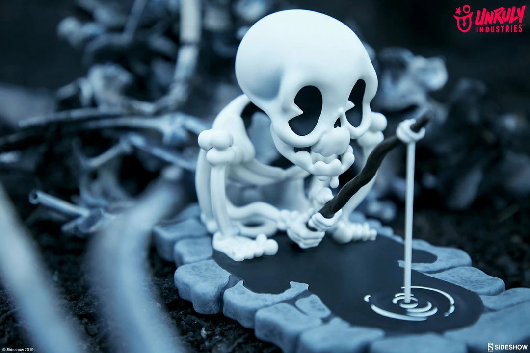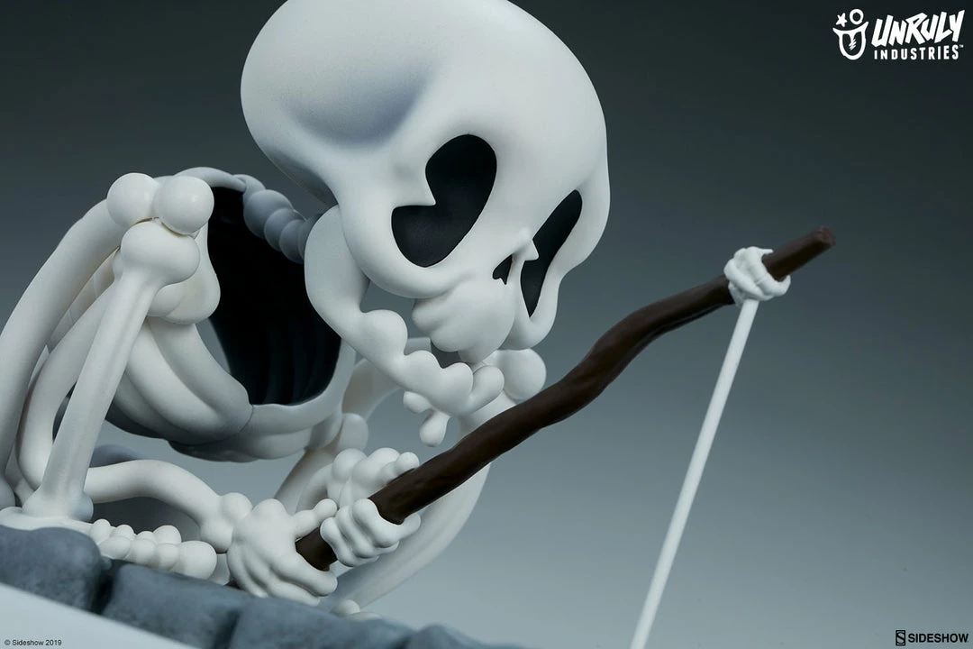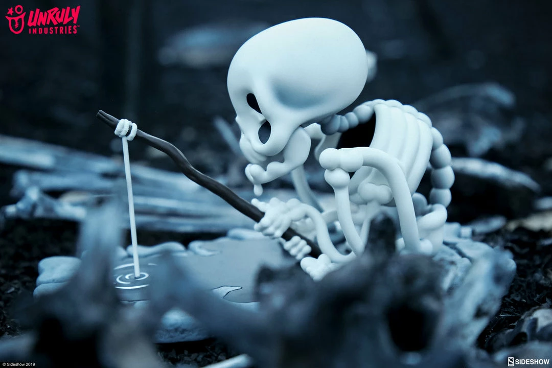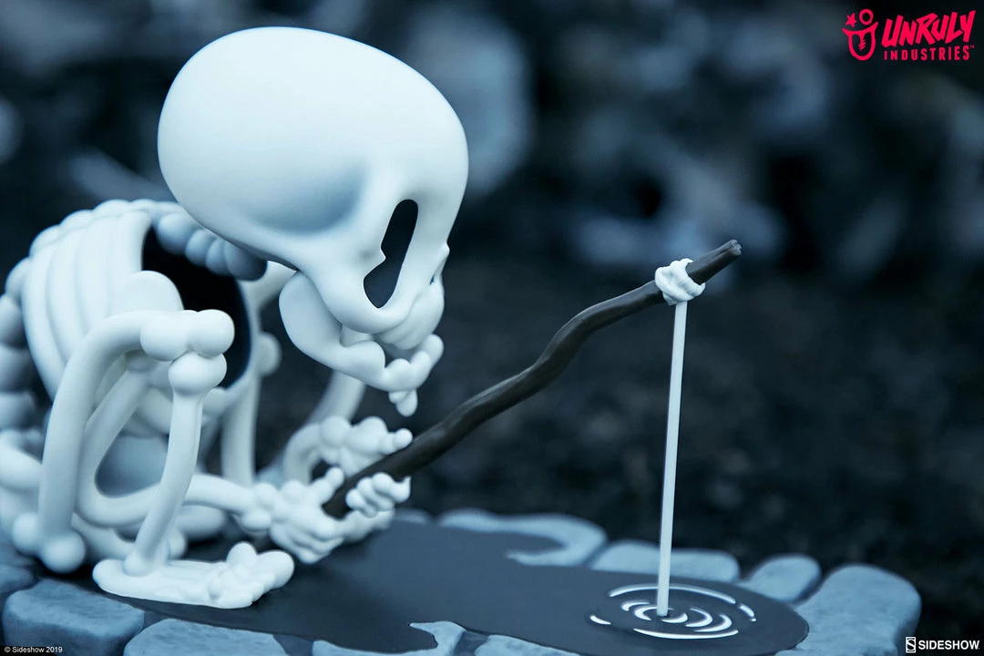 We’ve got a reel good feeling about this one. Gone Fishin’ by T. Wei is packed with skele-tons of personality, so relax, take the bait, and sit bone idle with this delightfully dead limited edition designer collectible toy.