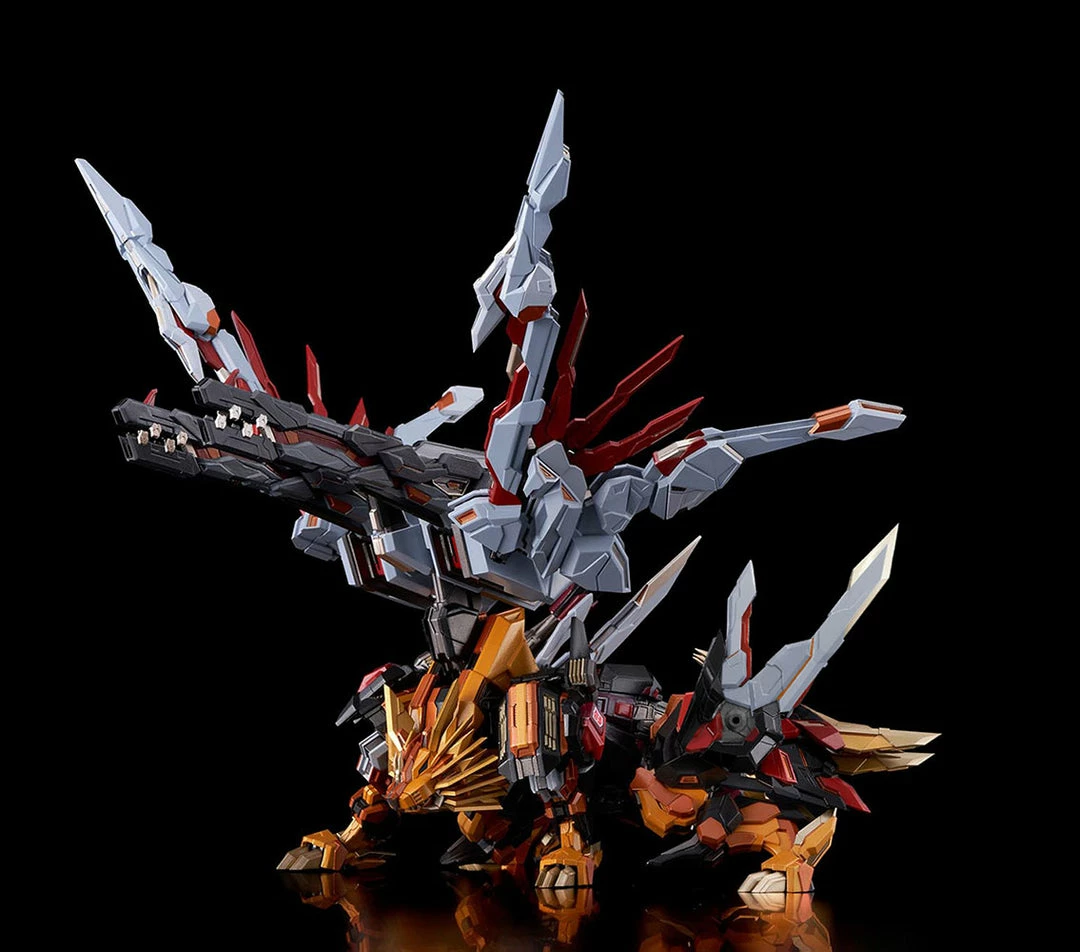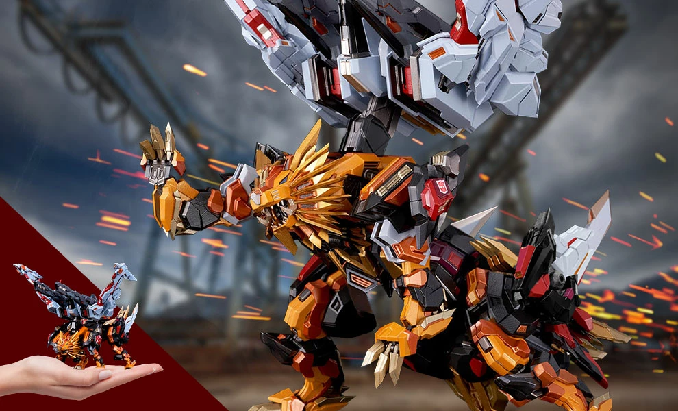 After falling victim to Deathsaurus’s Living-Metal-Destroying Cannon, Ginrai was left in an immobile state. Desiring to be of use, he insisted on undergoing an experiential procedure that would enable Ginrai to become a power-up to Star Saber. He underwent the process and became “Victory Leo” finally! After combined with Star Saber, Victory Saber will be the final combined form! It is a fully articulated figure with over 120 articulated positions! Super-poseable with diecast parts for solidity and heaviness! LED lighting effect on eyes and mouth!