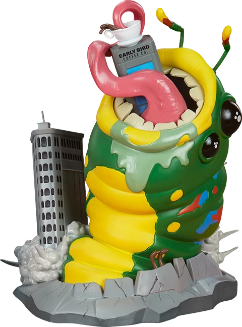 Youād have to get up pretty early to outsmart the Wrath of Wormzilla!Ā designer toyĀ by Mike āPoopbirdā Groves.Ā While this lovable kaiju lays waste to the city, heāll worm his way right into your heart!